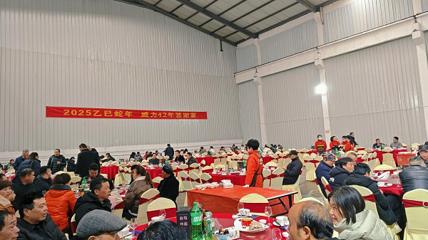 2025年2月12日,威荣精锻设备有限公司“感恩同行,共创未来”42周年答谢宴在公司内隆重举行。公司领导、合作伙伴、客户朋友以及全体员工等350余人欢聚一堂,共同庆祝这一重要时刻,同时公司领导对2024 年度为公司做出杰出贡献的员工们进行了表彰。